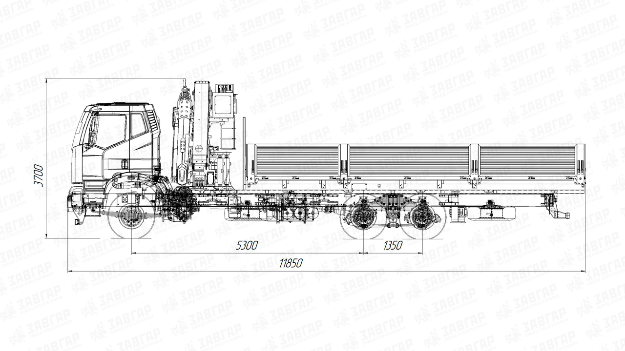 | Размеры бортовой платформы, ДхШхВ, мм | 6200х2550х750 (600), 6500х2550х750(600), 7800х2550х750(600), 8000х2550х750(600) |